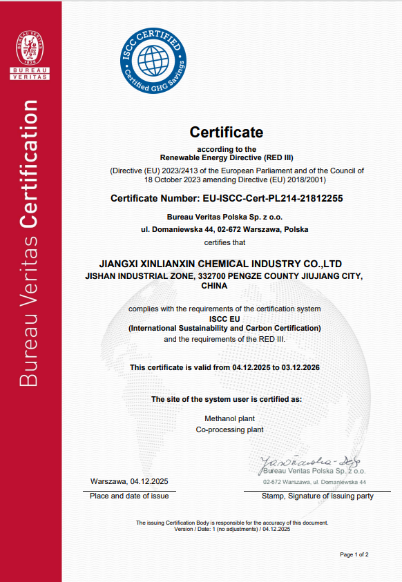 ISCC(國際可持續(xù)發(fā)展和碳認證)是歐盟認可的可持續(xù)性認證體系,覆蓋生物能源、生物燃料、化工產(chǎn)品等多個領域,其認證要求涵蓋原料可持續(xù)性、溫室氣體減排、全生命周期碳足跡等核心指標。隨著全球航運業(yè)加速脫碳,綠色甲醇逐漸成為替代傳統(tǒng)船用燃料的重要選擇,ISCC EU認證也成為產(chǎn)品進入歐盟及國際市場的必備資質(zhì)。